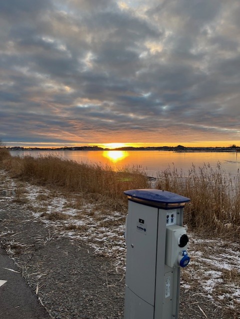 Fasiliteter: Rolig og skjermet, Fylling av ferskvann, tømming av søppel. Strøm er inkludert i avgiften.
